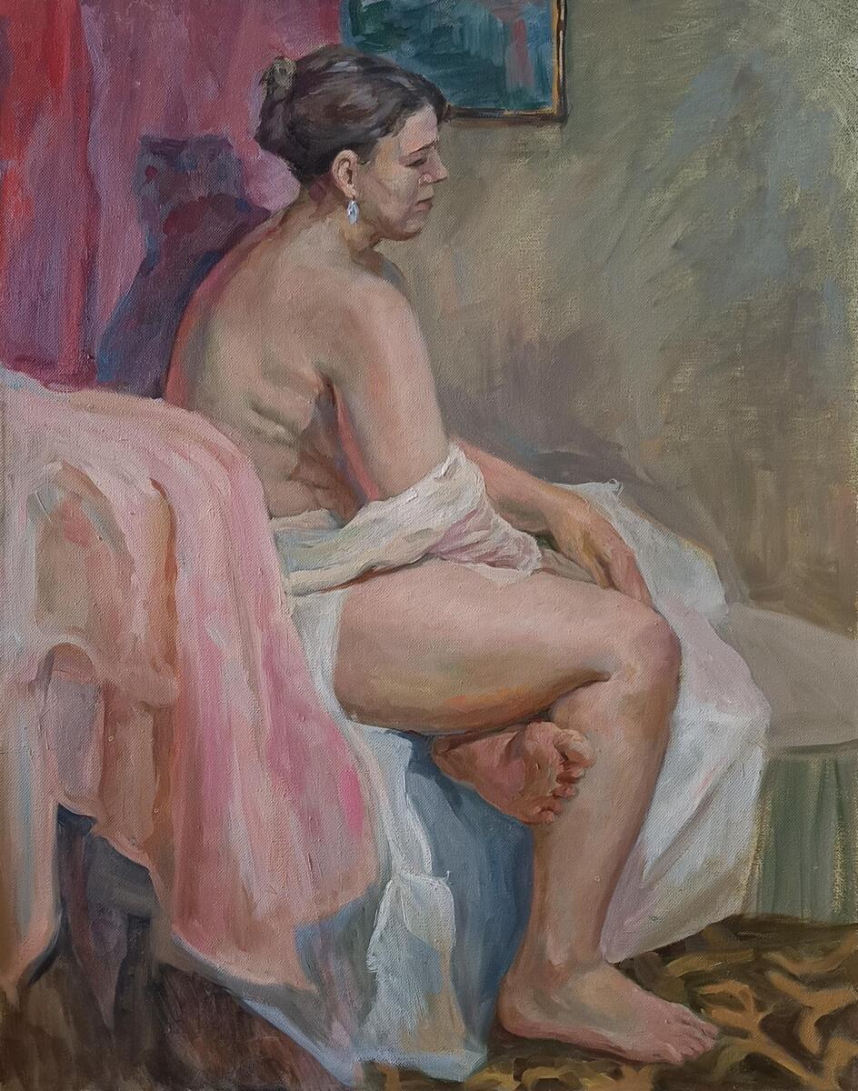 Женская обнаженная натура. Портрет Лидии в нежных розовых оттенках