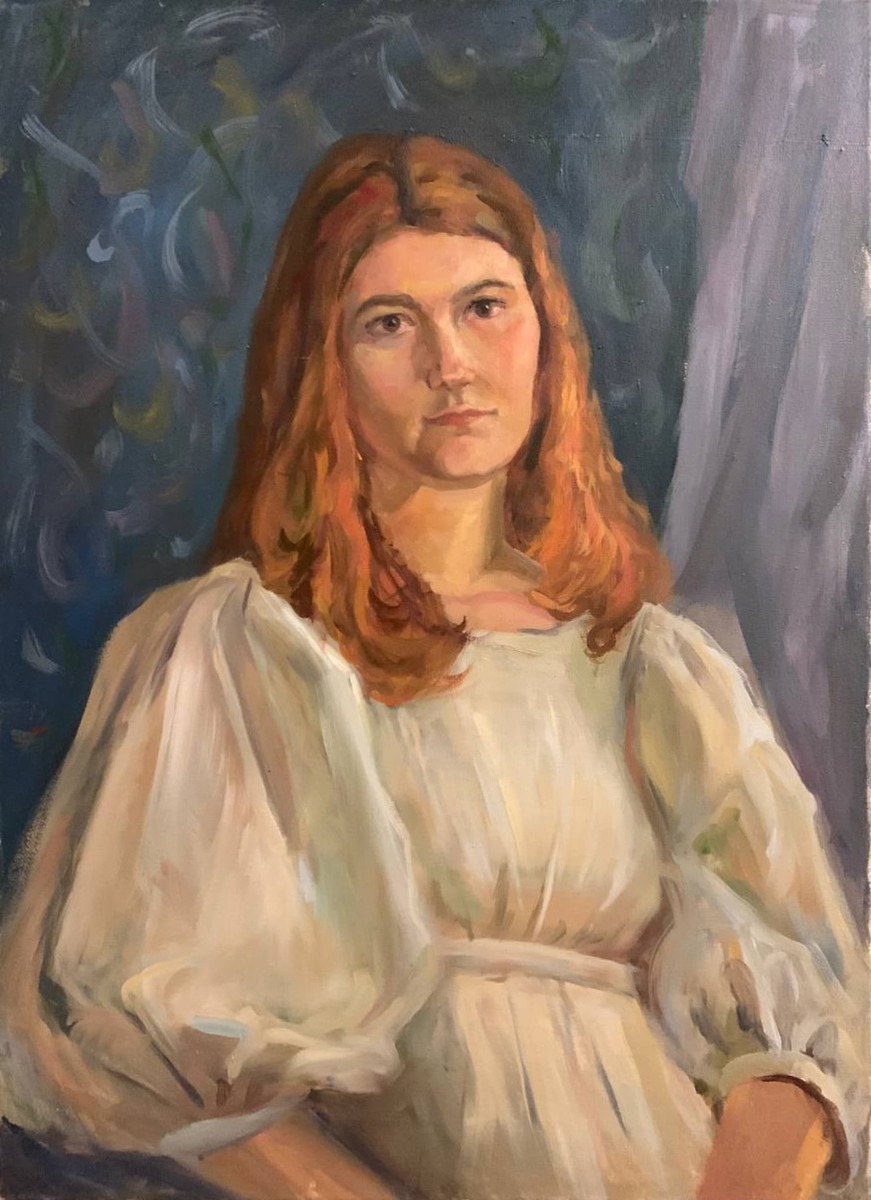 женский портрет с руками художницы Марии