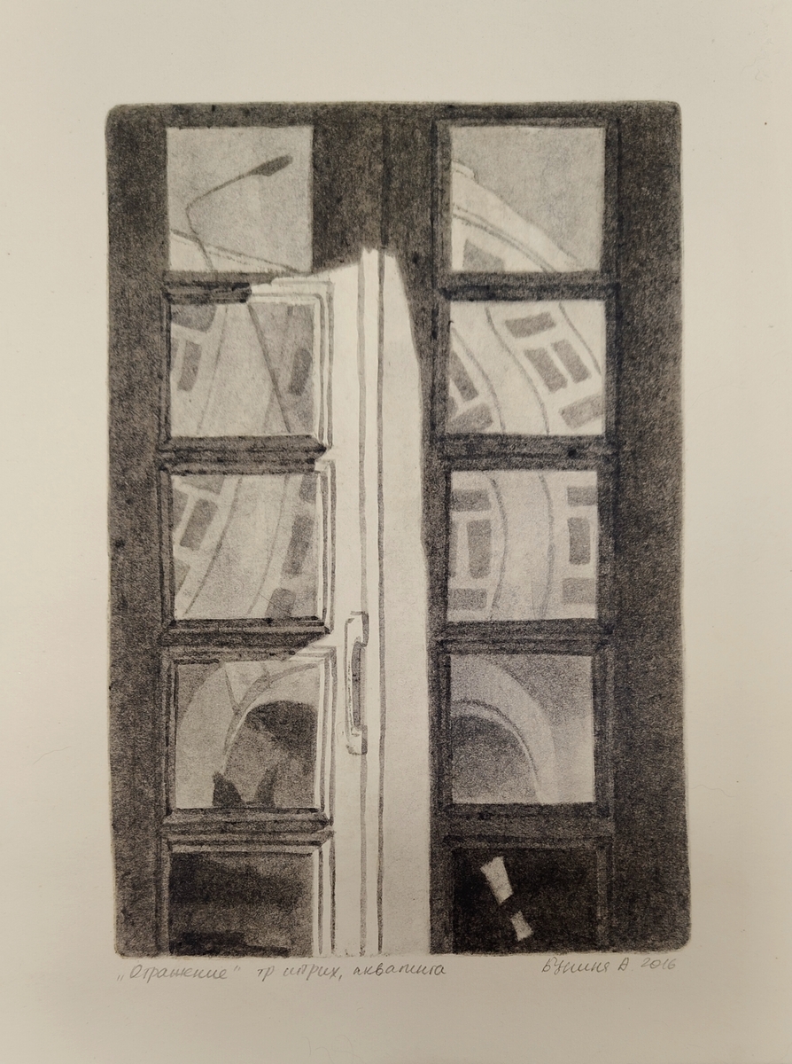 Офорт, травленый штрих, акватинта. Доработка акварелью. Тираж 1/1. Размер изображения без полей 19х13 см