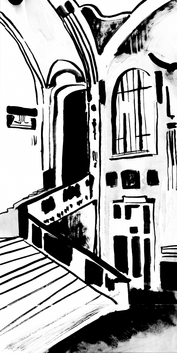 Часть серии об архитектуре модерна, где индустриальное встречается с органическим. Плавные линии интерьера и геометрия лестницы передают диалог между человеческим замыслом и телесным опытом пространства