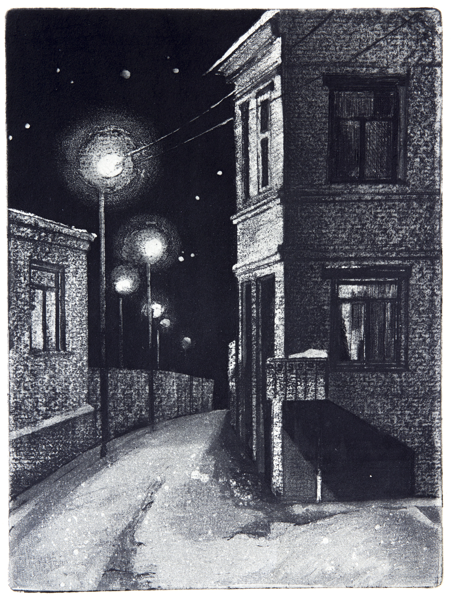 "Безлюдье". Офорт. 17:21, 2021. По мотивам стихотворения В. Брюсова "Ночная улица"