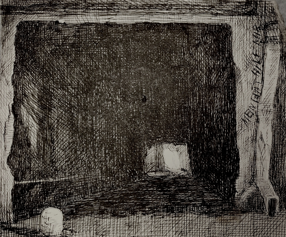 Верхний правый угол чуть чуть оторван (на фото видно). Надпись на стене справа: Mein Gott, hilf mir (Боже, помоги мне)