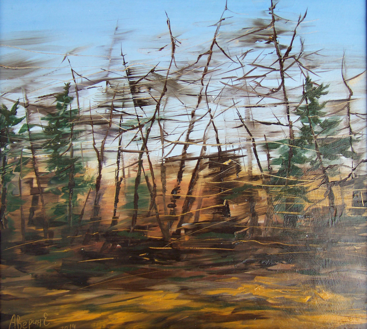 Размытый дорожный пейзаж из серии дорожных видов из окна транспорта, выполнено на жестком листе оргалита 35х40 см. Работа оформлена в минималистичную деревянную раму черного цвета с подвесами.