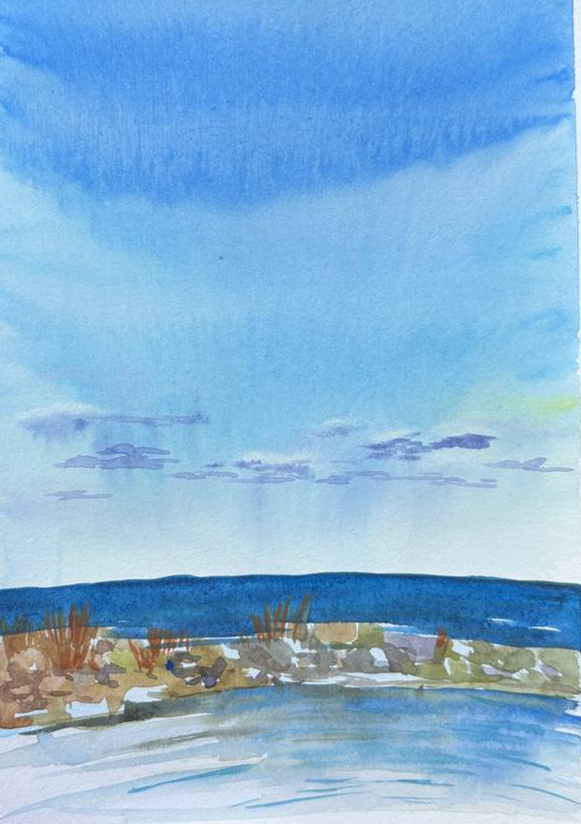 Этюд акварельный, написанный по памяти о посещении Ладожского озера.
