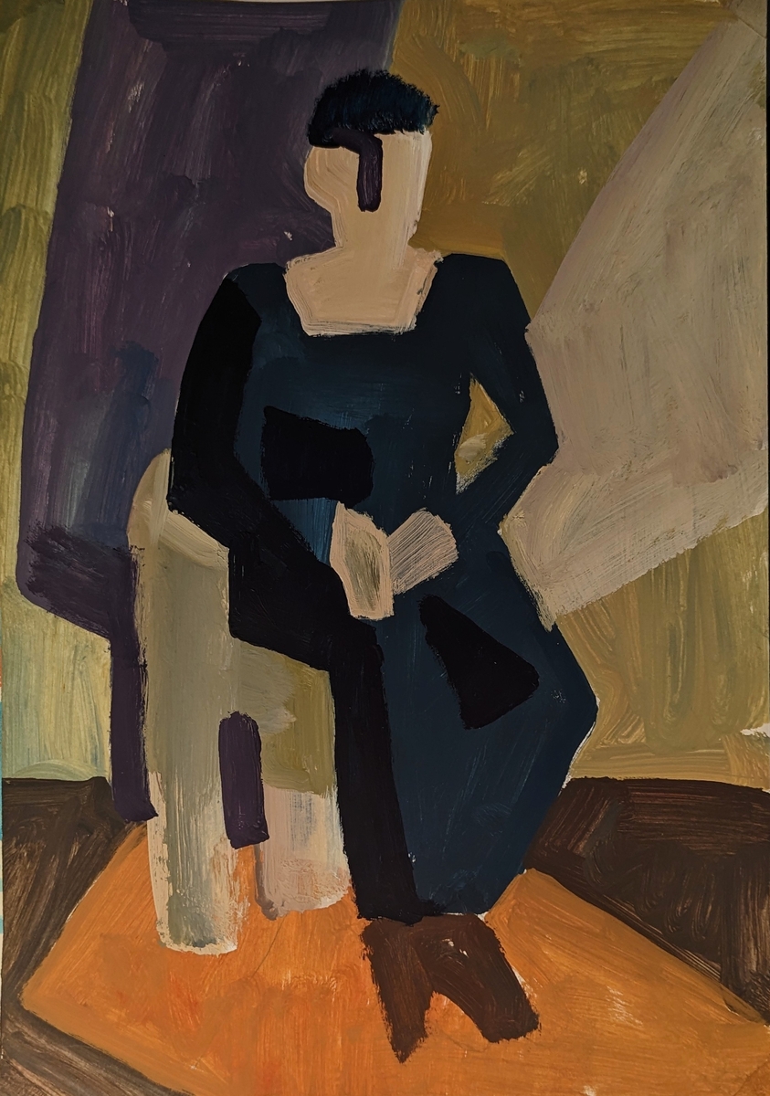 постановка сидящей натуры выполненная в смелой плоскостной живописной технике
