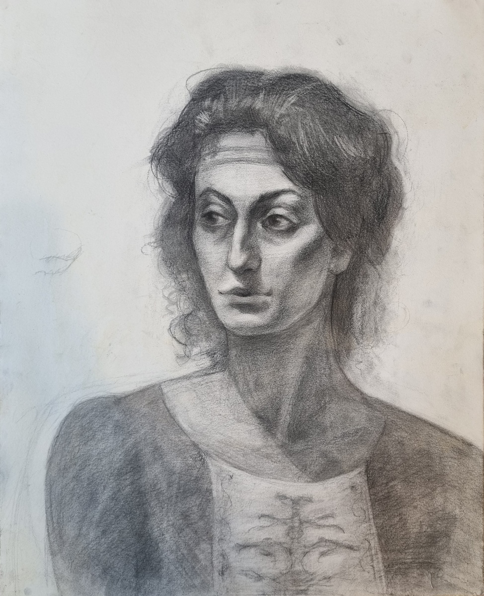 Портрет натурщицы, бумага, уголь. Учебная работа.