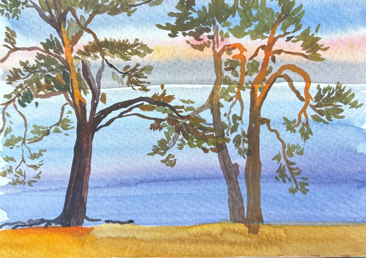 Этюд выполнен на обрыве озера Хепоярви в Ленинградской области. Закат после дождя. Апрель, 19 часов вечера.