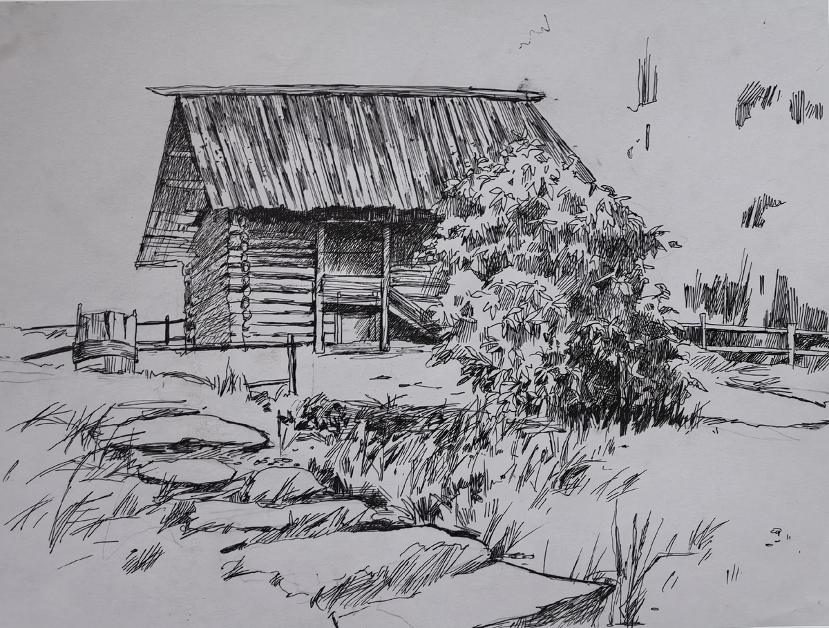 Зарисовка линером с пленэра в Пушкинских Горах