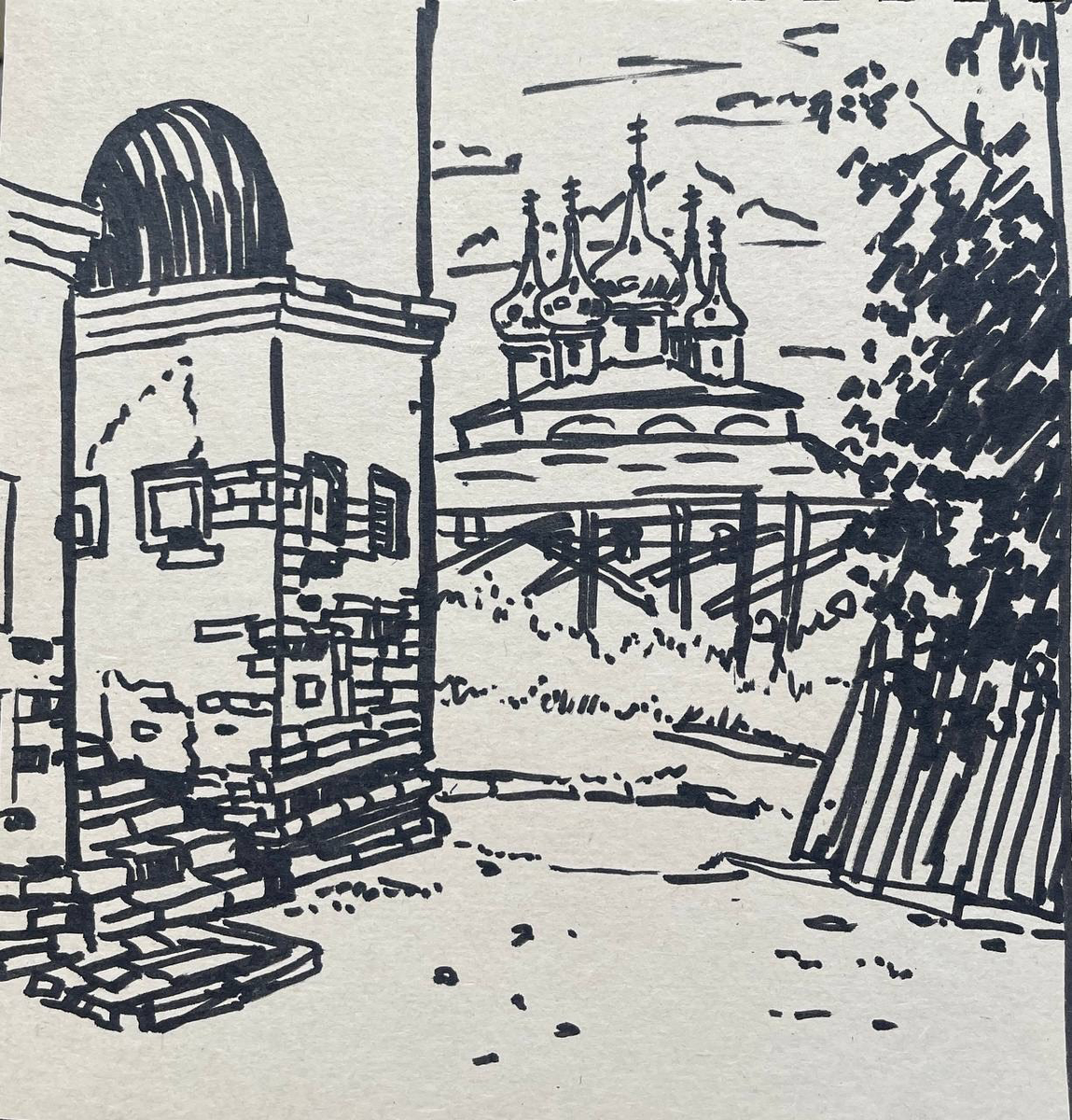 Вид на монастырь из городских закоулков