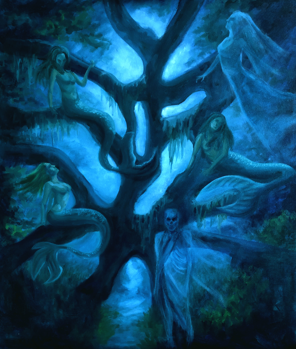 Один из киноэскизов к произведению Я.Братович "Черный помол" На картине изображено волшебное дерево,которое исполняет желания, главный герой ради спасения возлюбленной заключает сделку с нечистой силой.Атмосфера в духе Гоголевского Вия и славянской мифологии.
