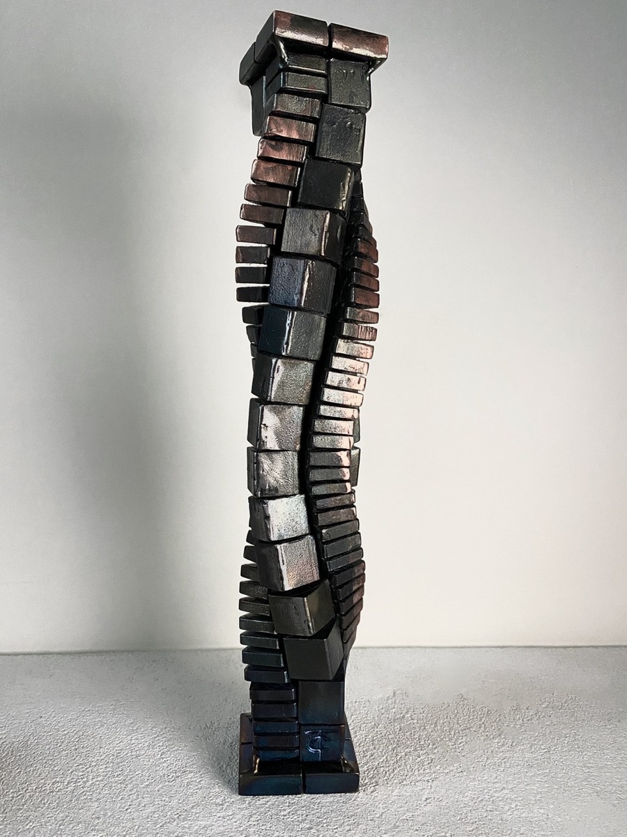 Скульптура их серии Артефакты- слияние светлого и темного ДНК. Создана методом горячей ковки и термической тонировки металла. Скульптура для интерьерного экспонирования. Серия Артефакты это образы истоков и энергий, лежащих в основании мироустройства. Исследование исходных процессов и явлений продолжается.