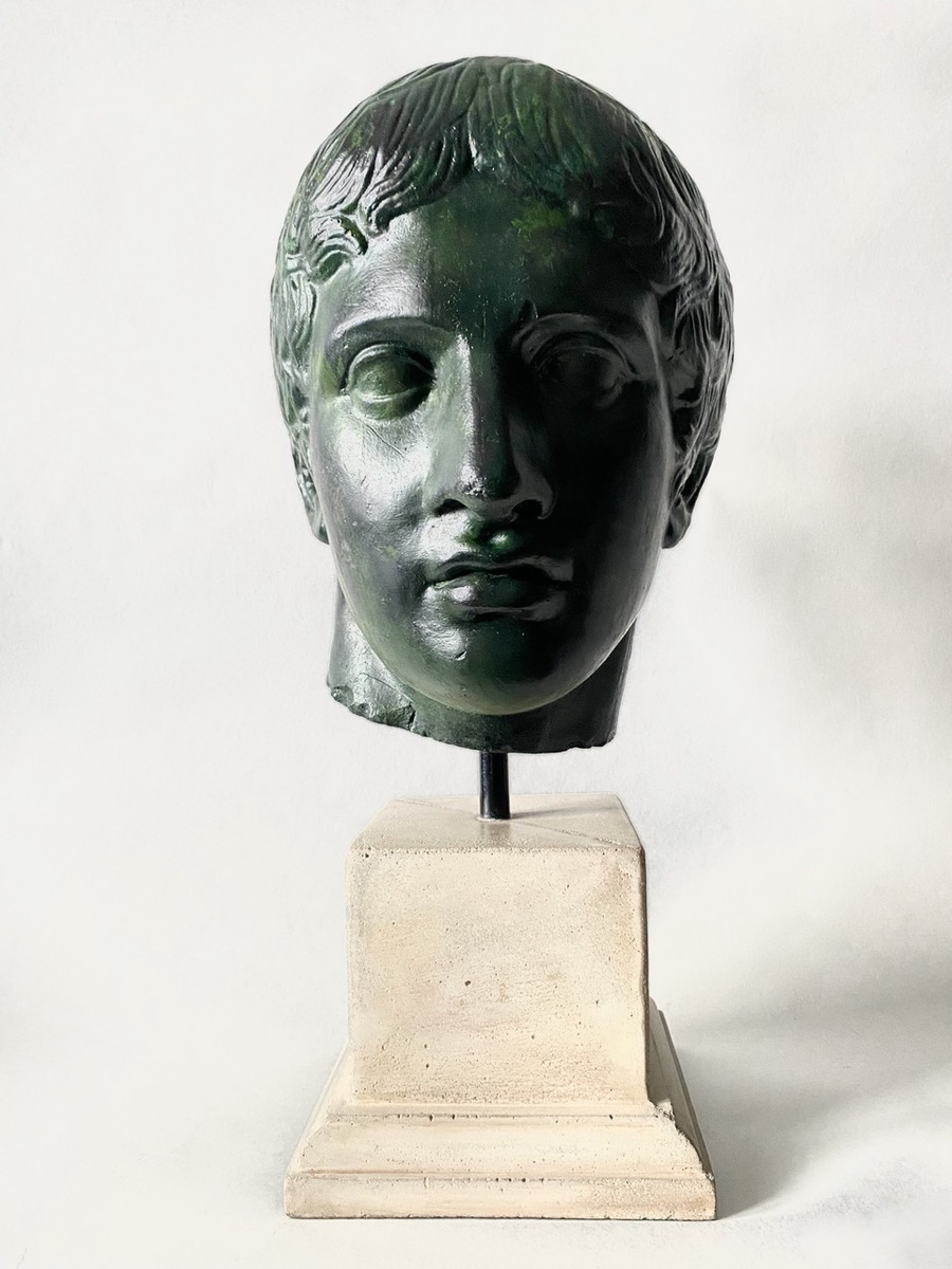 Скульптура создана из литьевого камня с декоративным тонированием. Основание выполнено из бетона. Скульптура для интерьерного экспонирования. Автор: Вершинин В.