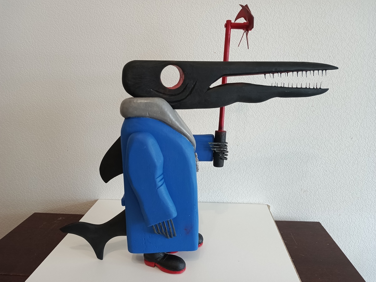 Crocofish Автор: Hakaro Материал: дерево, металл, пластик Размер: 55 см х 55 см Давным-давно Крокофиш был старой деревянной скамейкой в парке...Она была очень старой, с отсутствующими сучками и трещинами...Скамейку заменили на новую. Старую скамейку разобрали и выбросили... Сотни тысяч людей сидели на этой скамейке, и я решил сохранить память о них в виде Крокофиша...