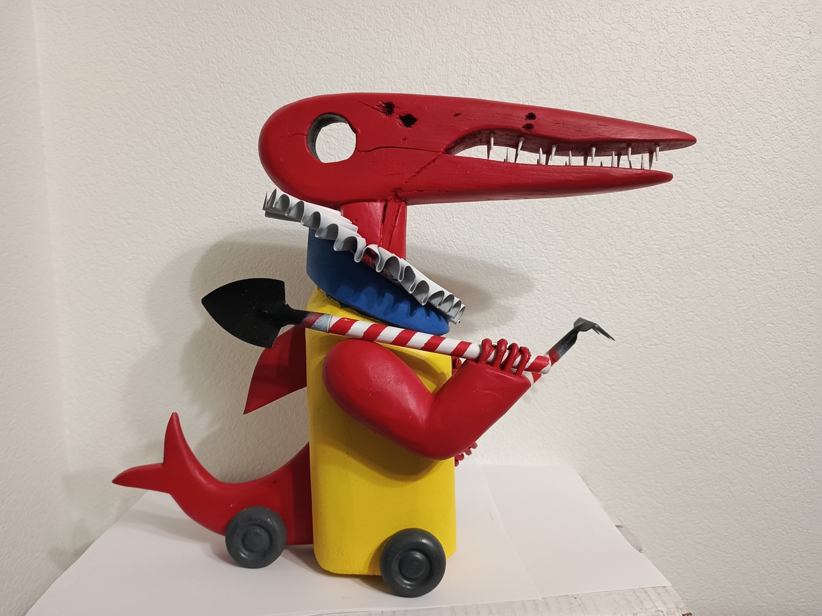 Crocofish 2 Размер: ширина 40 см, высота 33 см. Материал: дерево, металл. Давным-давно Крокофиш был старой деревянной скамейкой в парке...Она была очень старой, с отсутствующими сучками и трещинами...Скамейку заменили на новую. Старую скамейку разобрали и выбросили... Сотни тысяч людей сидели на этой скамейке, и я решил сохранить память о них в виде Крокофиша...