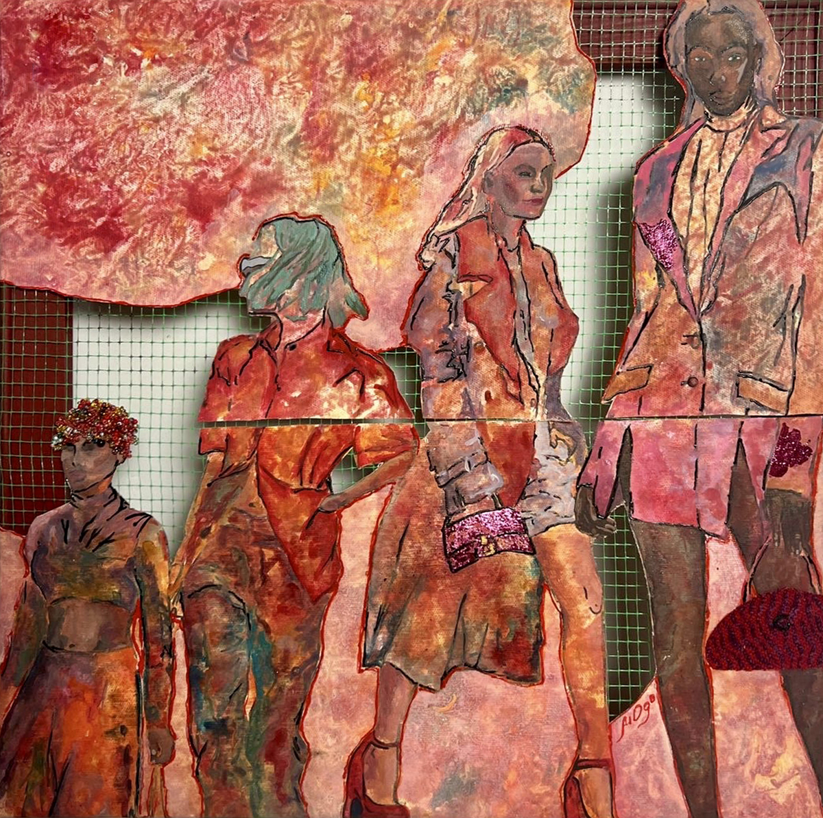 "Силуэт", освобожденный от привычных рамок и шаблонов, раскрывается как символ безграничного самовыражения. В его многогранности мы учимся видеть не только игру форм и красок, но и спектр возможностей, пробуждающих в каждом из нас смелость проявлять свою уникальную природу. Микс медиа подчеркивает данное разнообразие: бисер, текстильные вставки, сеть и отрезки холста. Каждый материал вносит свою отдельную мысль, формируя многослойный язык.