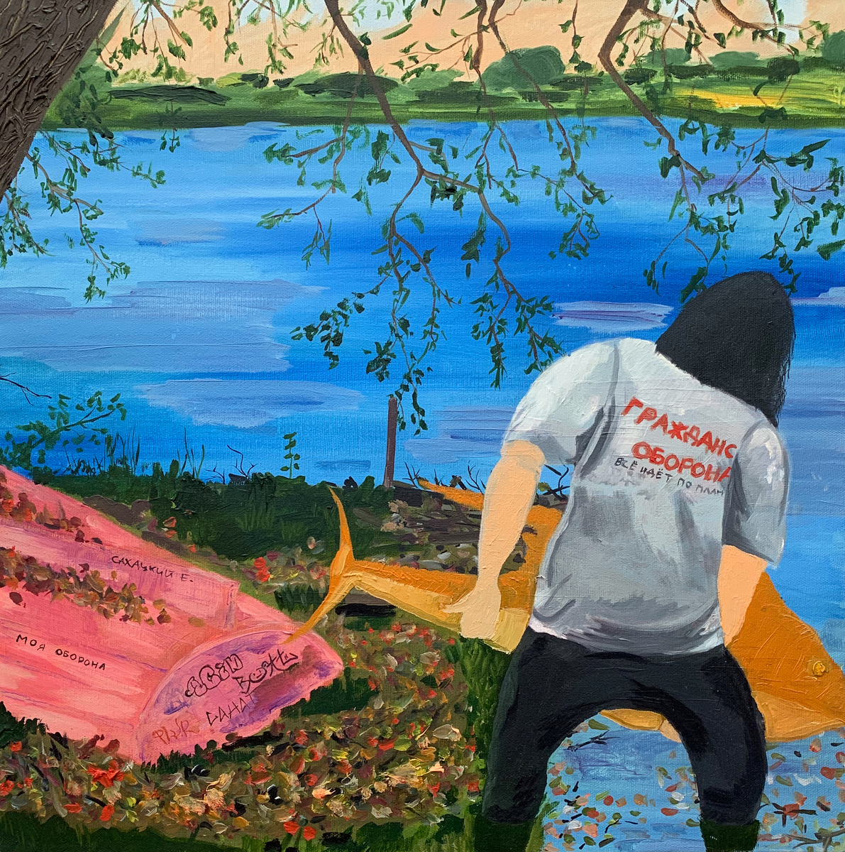 Пейзаж написан после поездки в Дом-музей Михаила Пришвина в Дунине. Если пройти чуть вниз поселка, можно выйти к реке, где и была запечатлена эта лодка. Выставки: Ничего нового, ЦСИ Винзавод, Проект «Старт», Москва, Россия, 2017 ART-Лихорадка Vol.2, Squat 3/4, Москва, Россия, 2018 Туда - во всеобщий энергопоток, InArt Gallery by Ksenia Podoynitsyna, Москва, Россия, 2019