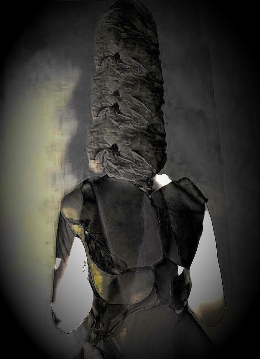 АНАМОРФИЧЕСКАЯ КУРИЦА серия работ: цифровые коллажи, печать на пластике, постеры, gif-арт 2018 Монохромность черно-белой фотографии напоминает сумерки пасмурного дня. При помощи коллажей я совмещаю изображения, я вижу невнятное, мутное, неопределенное. Наше зрение в сумерках так же дурачит нас - в коряге мы можем увидеть собаку, гнома, монстра - глаз автоматически достраивает образ, тревожа - заменить, если последний не может быть однозначно прочитан.