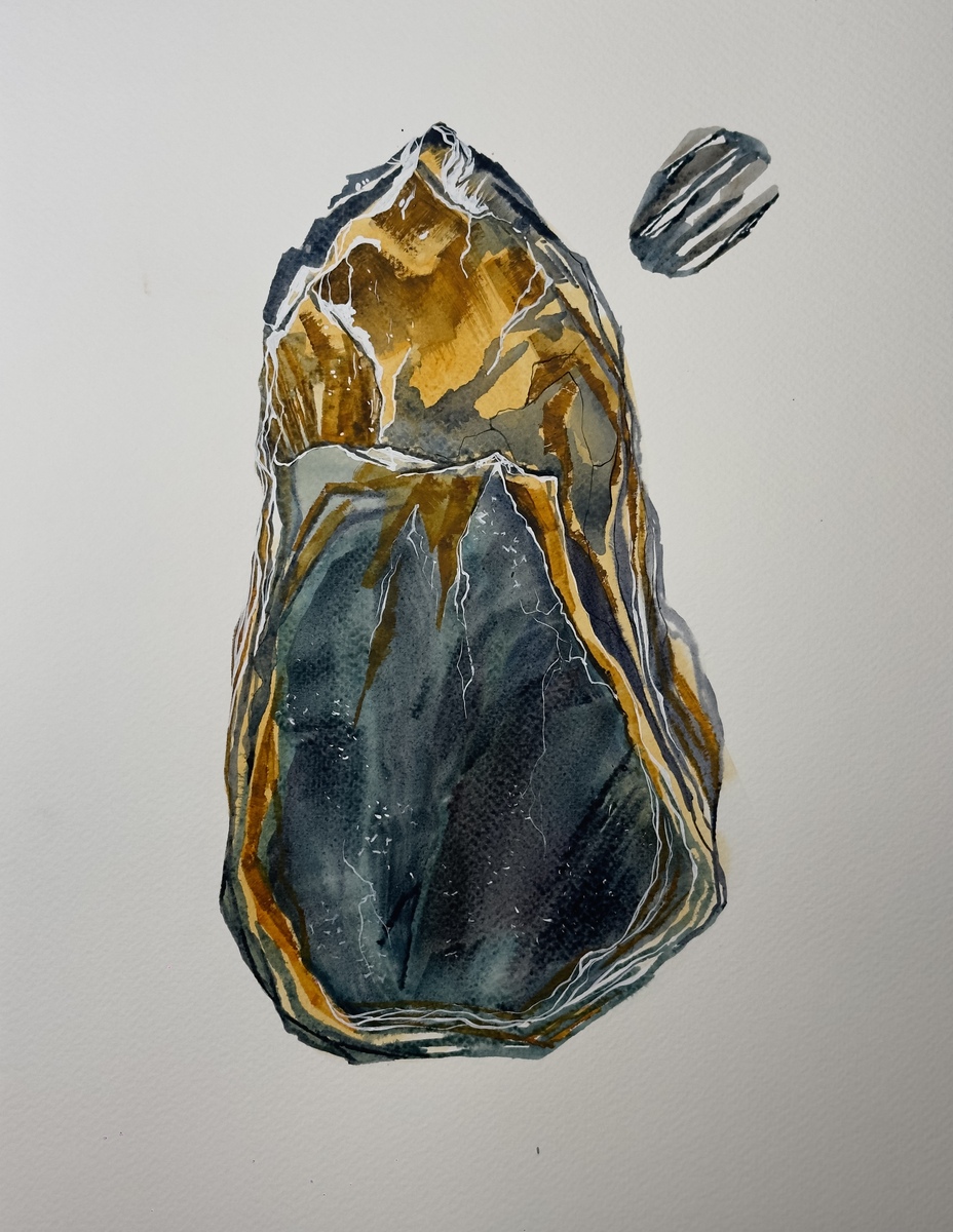 Акварель, белая темпера, бумага. Живописный этюд необычного камня, найденного у ручья в Сванетии. Такая красота у нас под ногами, стоит только заметить.