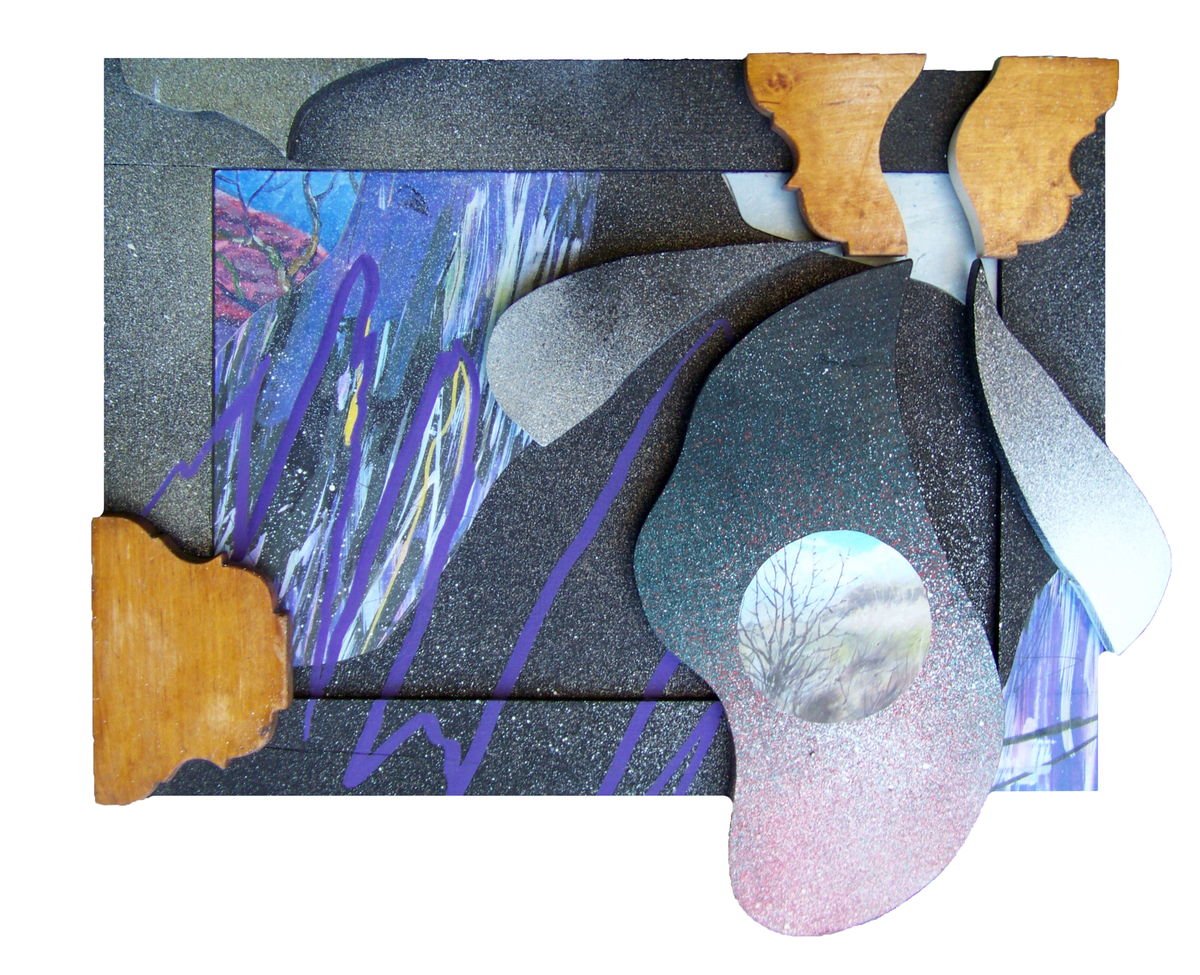 Абстрактная работа из серии Трансформация, в которой для создания ассамбляжей и коллажей используются фрагменты более ранних картин и этюдов. Серия метафорически сообщает о фрагментарности и деструктивности актуального контекста окружающей среды. Данная работа включает в себя найденную раму для зеркала, распиленный кронштейн для карниза и части различных скетчей и этюдов прошлых лет.