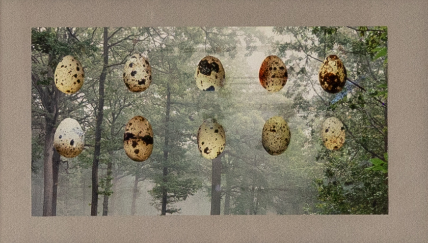 Аналоговый коллаж. Оформление: серое паспарту, черная рама.