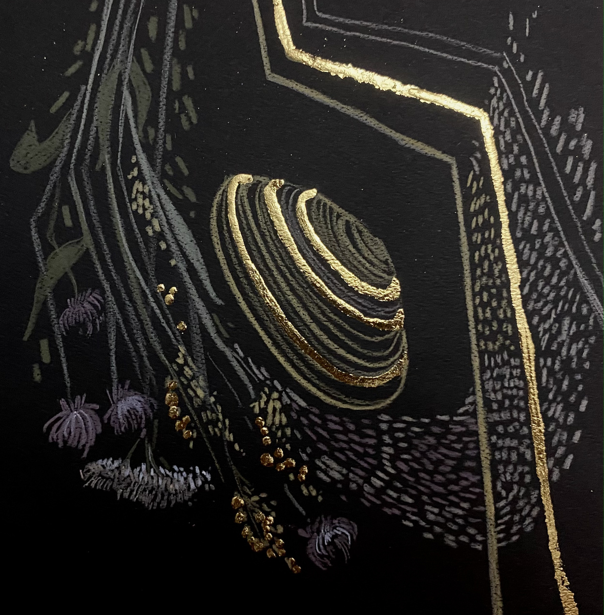 Декоративная композиция, выполненная цветными карандашами с добавлением потали