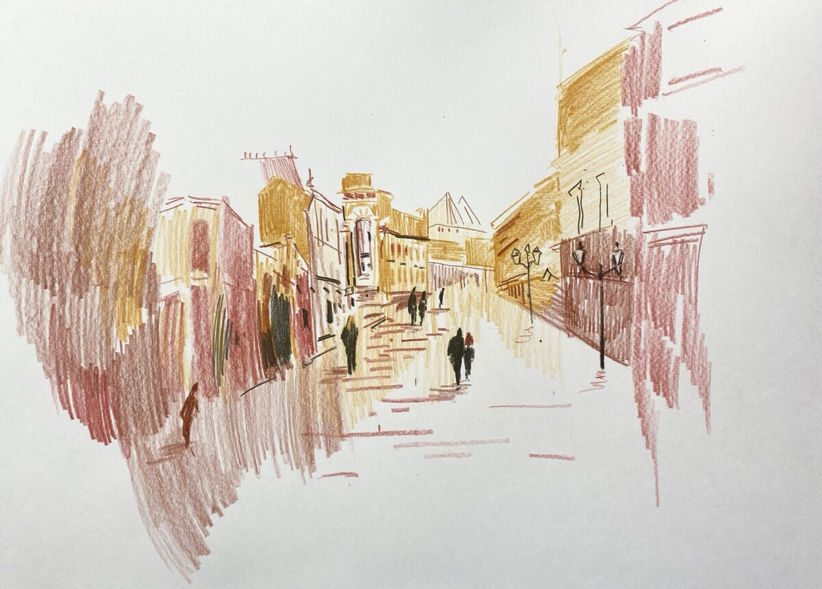 Графическая композиция, выполненная цветными карандашами