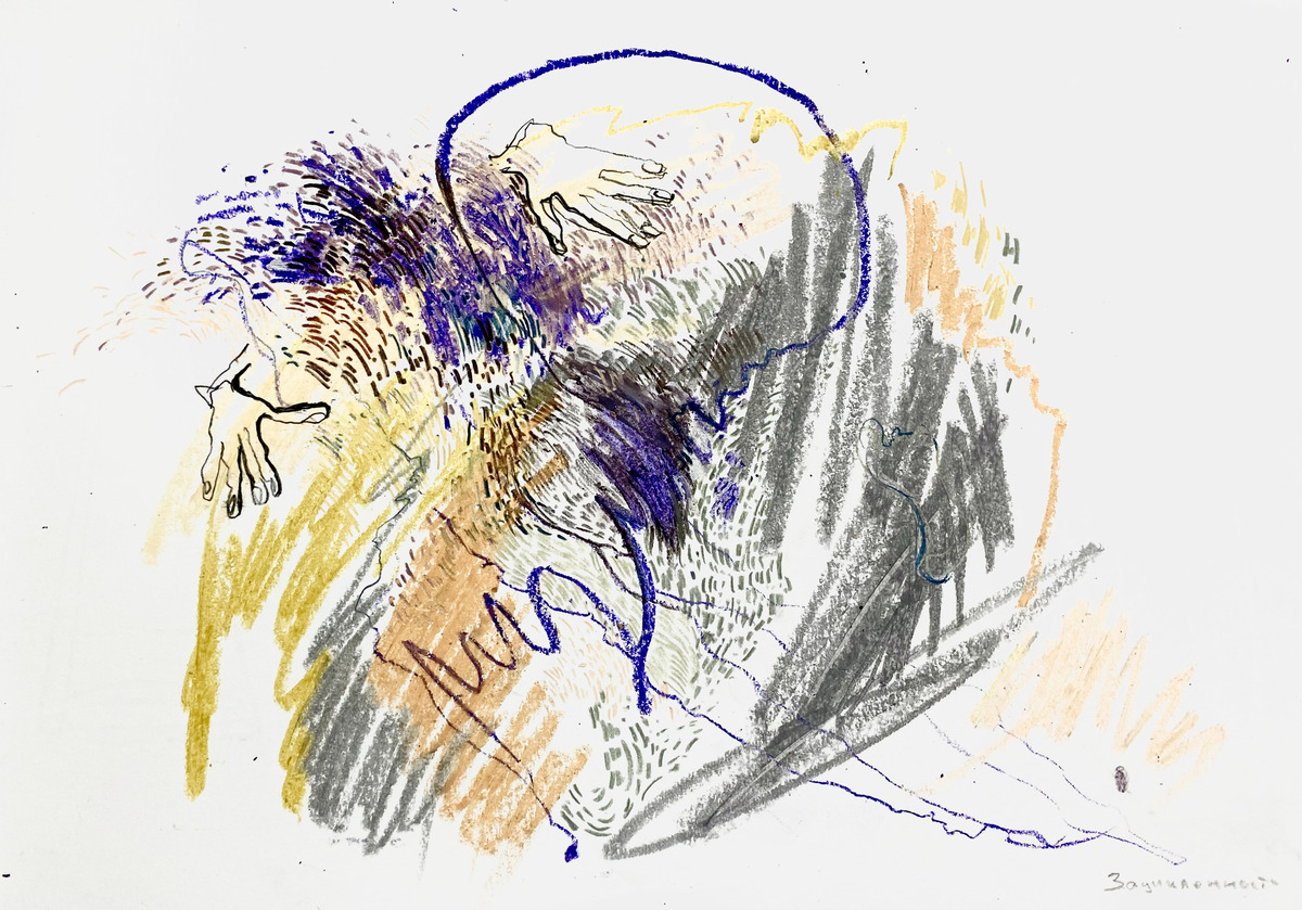 Абстрактная композиция масляной пастелью