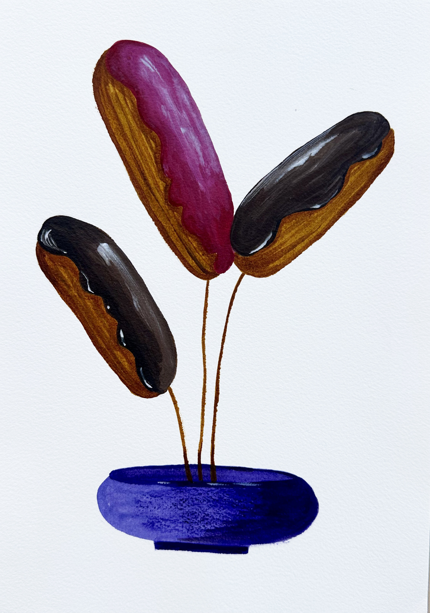 Необычная живопись гуашью, совмещающая в себе цветы и еду.