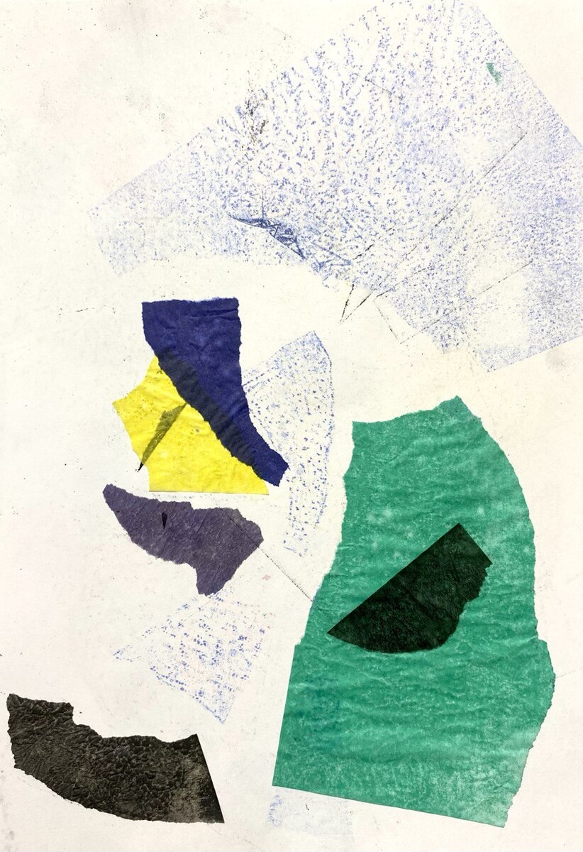 Абстрактная работа в технике горячей печати с элементами коллажа
