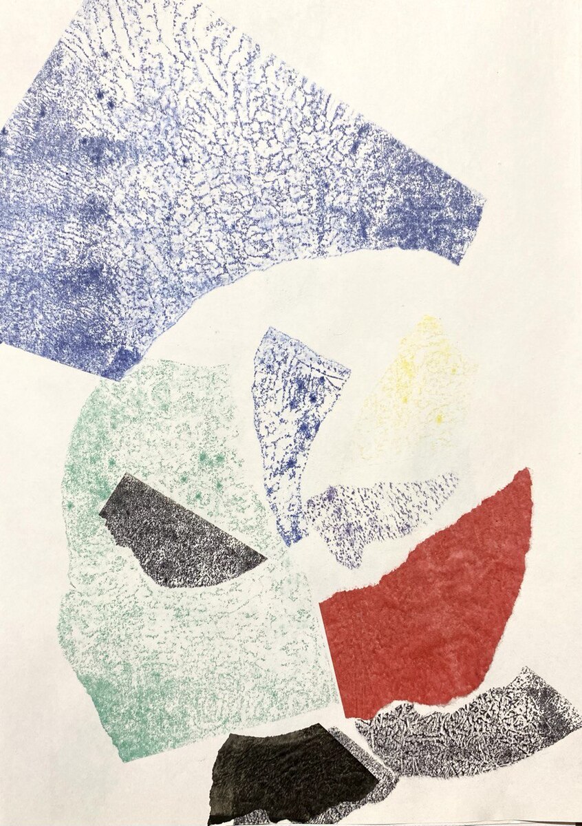 Абстрактная работа в технике горячей печати с элементами коллажа
