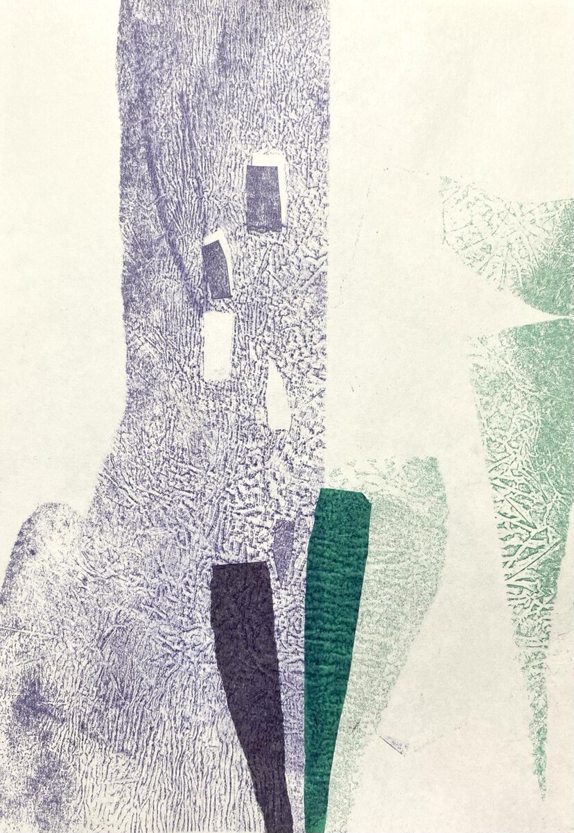 Абстрактная работа в технике горячей печати с элементами коллажа