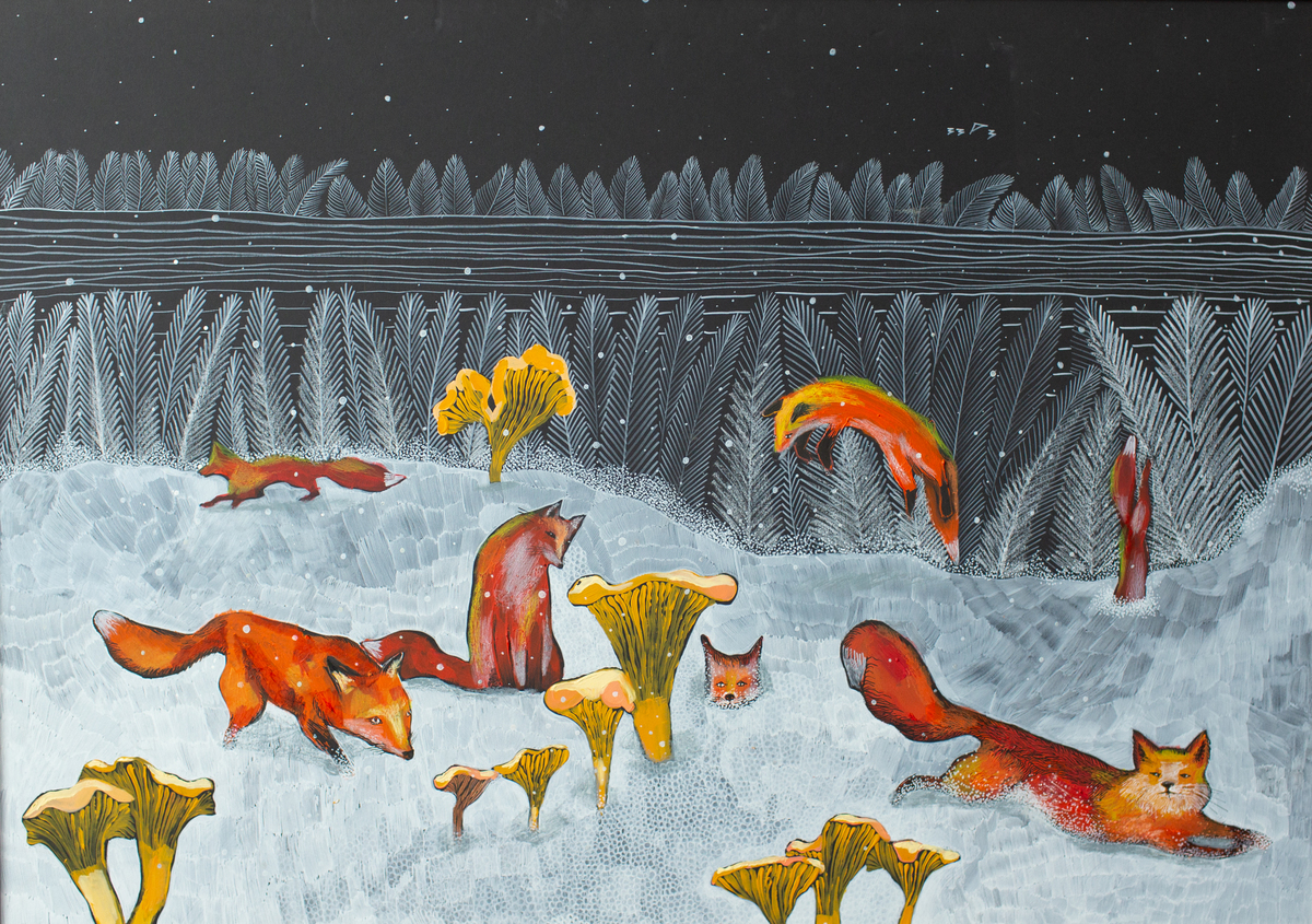 Лисы Холст, масло 100 × 70 см