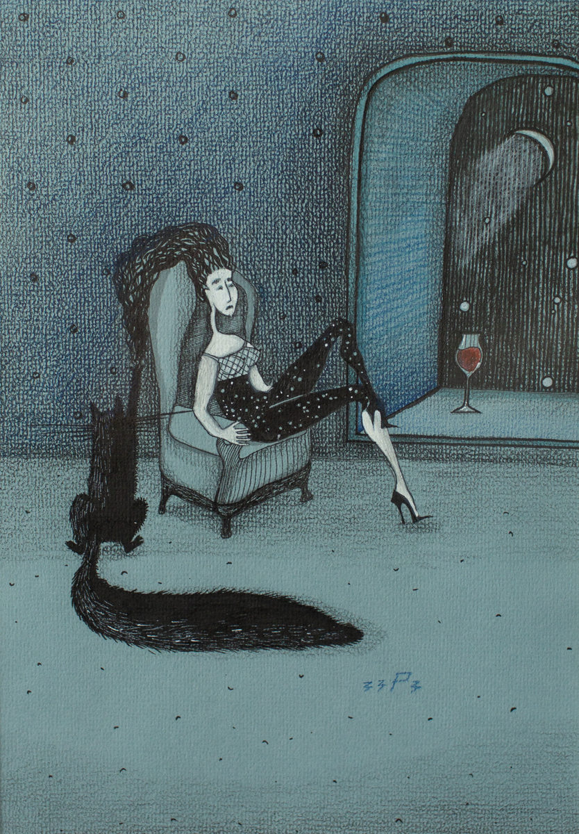 Винный клуб Графика, тушь, перо 30 × 20 cm