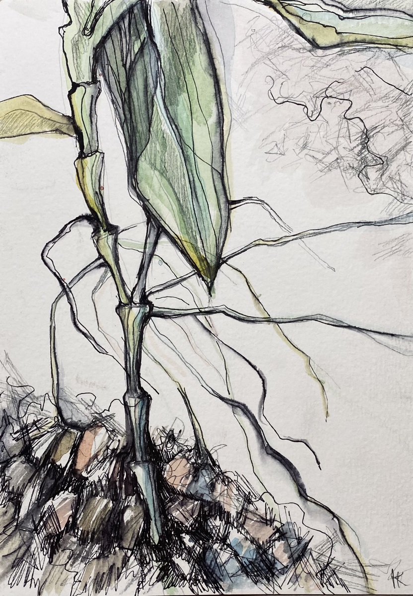 Орхидея Dendrobium anosmum Дендробиум непахучий 14,5x21см Тушь, карандаш, акварель. Бумага Набросок из оранжереи в Царицино. На совместном «пленэре» с Арт-болото.
