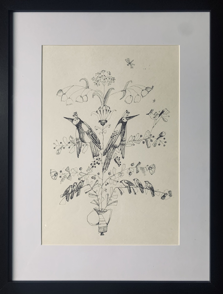 Рисунок выполнен линером на старой желтоватой бумаге по мотивам старинных европейский открыток (не копии)