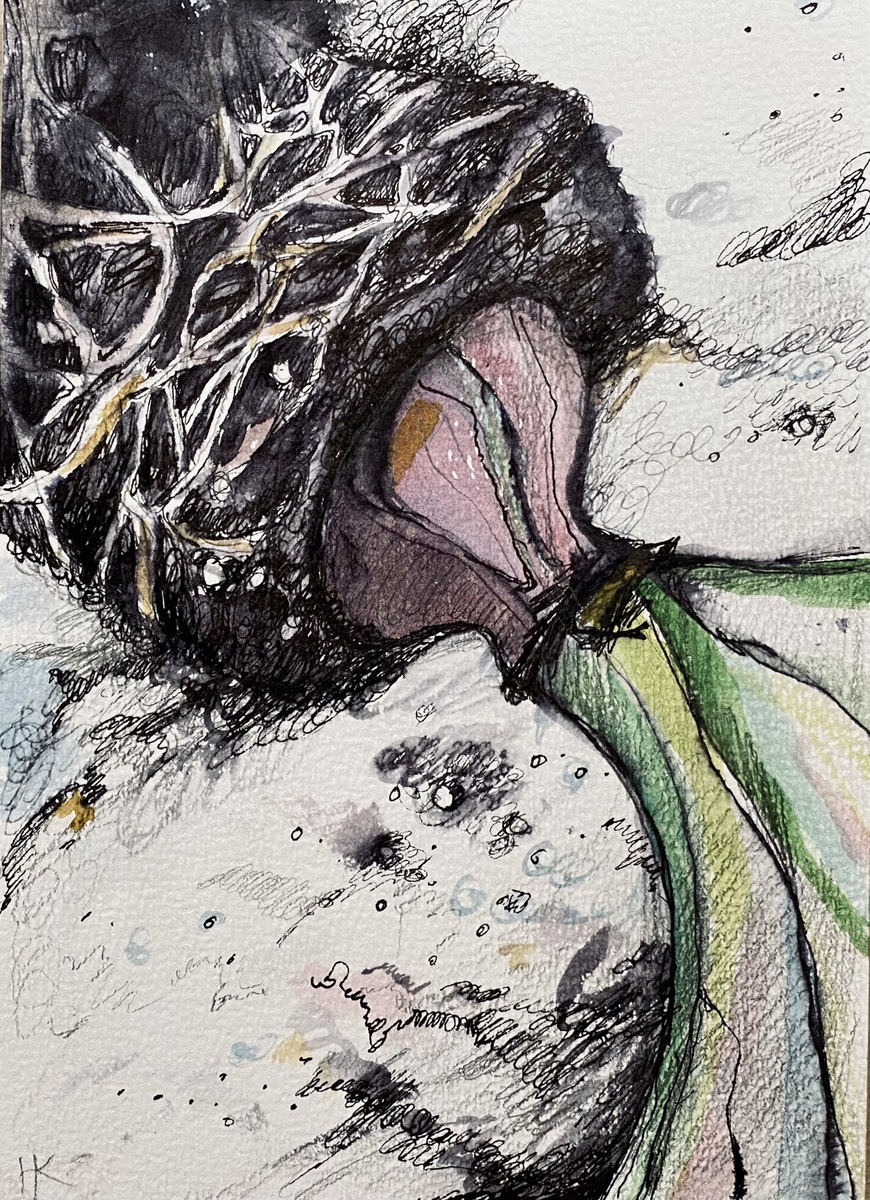 Луковица гипиаструма Гиппеаструм (лат. Hippeástrum)  Название рода происходит от др.-греч. ἱππεύς — всадник и ἄστρον — звезда.  14,5x21см Тушь, карандаш, акварель. Бумага Набросок из оранжереи в Царицино. На совместном «пленэре» с Арт-болото.