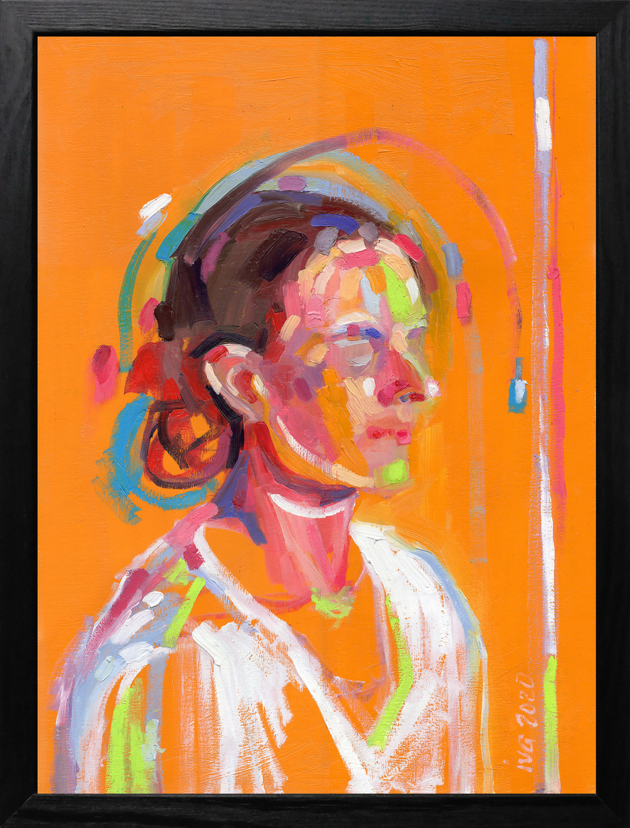 Масло, холст без подрамника, сатиновый лак, формат холста А2 (59,4х42 см). Картина оформлена в чёрную деревянную раму (62х44х1,8 см). В этой работе я постаралась передать предвкушение, тревогу и в то же время надежду на лучшее, используя яркие цвета и энергию линий. Экспрессионизм встречается с элементами фовизма, подчеркивая напряжённость момента. Картина пробуждает интроспективные мысли, располагая к созерцанию.
