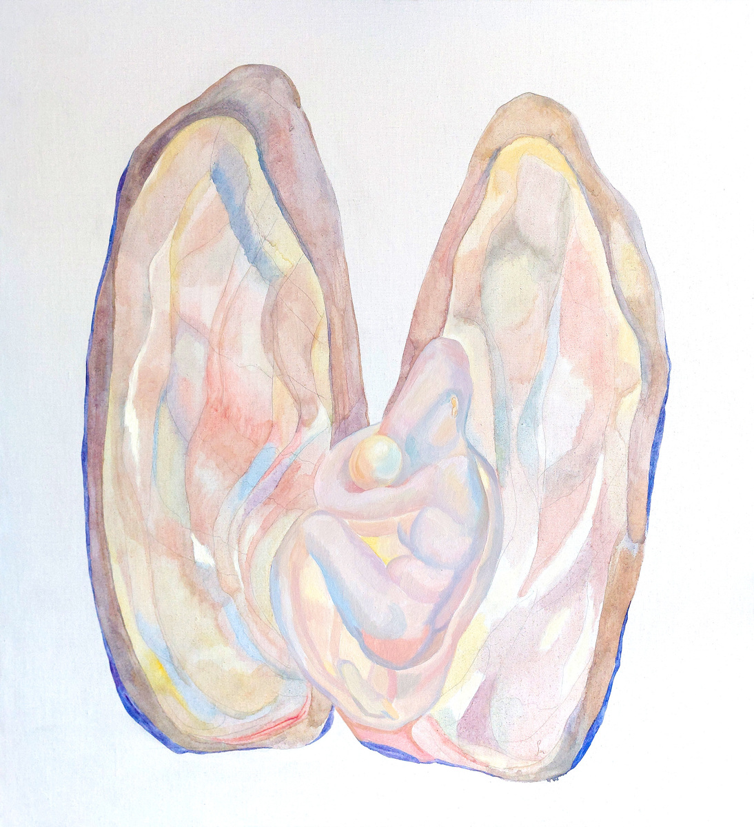 Данная картина имеет двойную подвесную систему, благодаря чему ее можно располагать на стене как вертикально, так и горизонтально. "Меня вдохновляет теория о том, что мы не первая цивилизация на этой земле. Существа, живущие в воде, "бывшие" люди — жемчужницы. Я считаю, что история циклична, и уход человека в море можно рассматривать как возможное будущее. В момент "соединения" с водой мы перестанем быть людьми и превратимся во что-то новое, но думаю, не менее прекрасное".
