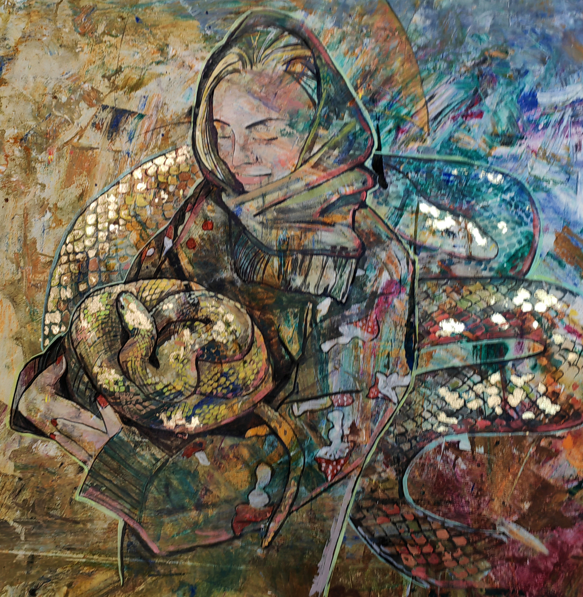 В очень древних источниках находят отголоски культа змеи. Некой всемогущей матери богини. Змееподобной телом. Изображение встречается на монетах и с оборота нательных крестов. В каменных изваяниях и в народных сказаниях легендах. Царица земли и подземелья. Хранительница несметных сокровищ. Покровительница недр и глубин. Хозяйка медной горы. Подобие русалки с змеевидным хвостом. Какой она представляется сейчас. Богиня с спокойствием и нежностью Мадонны обнявшая свернувшуюся змею. Лучезарная. Золотая.Свежая