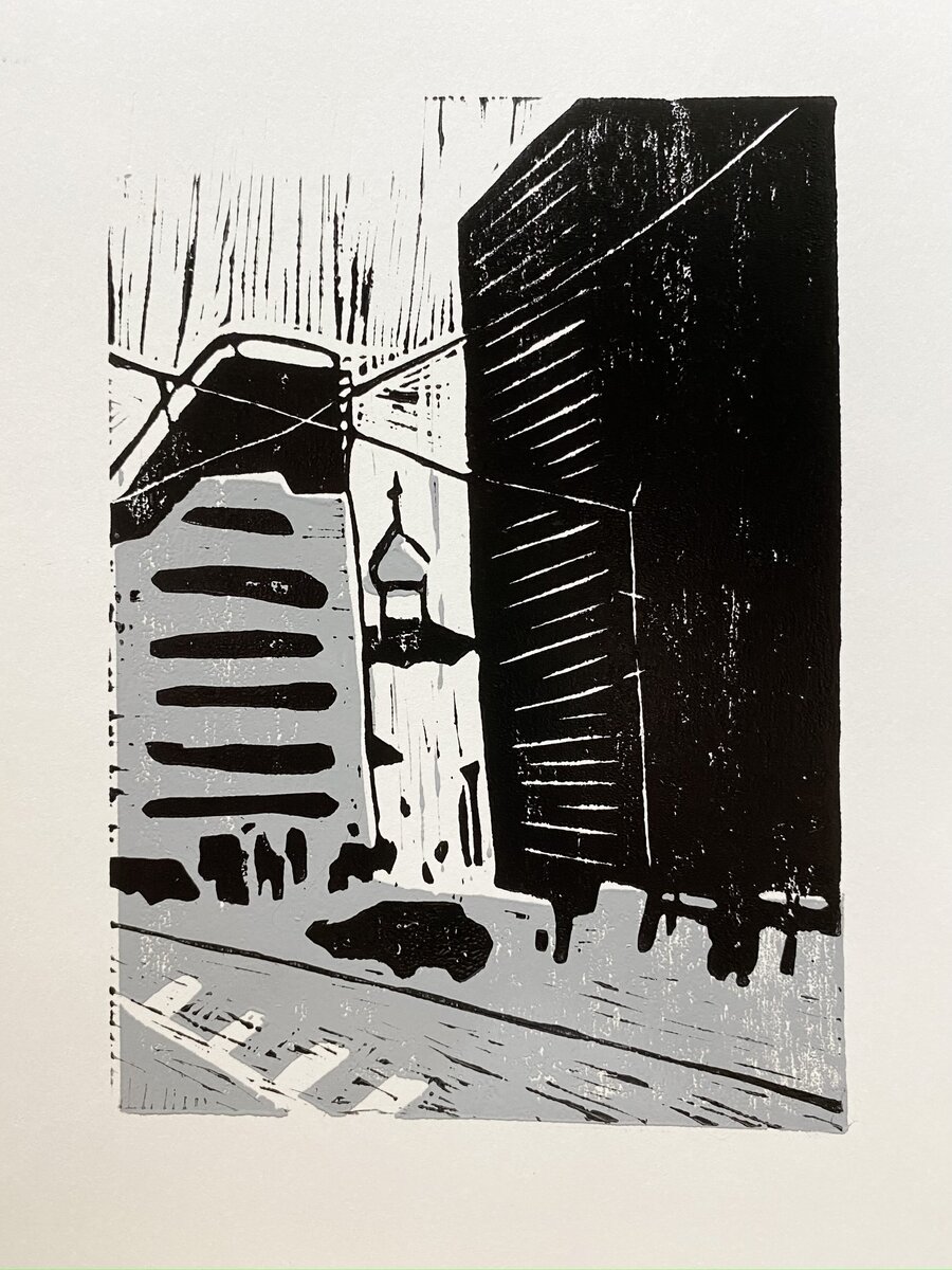 Эта работа отражает мой опыт переезда из Омска в Москву. Графическая серия рассказывает об ощущении себя в новом городе. О том, как незнакомые улицы становятся постоянным фоном к жизни. Здесь про поиск своего места в мире, среди бесконечных многоэтажек, церквей, российской действительности. Я каждый день пытаюсь цепляться за что-то знакомое, что может напоминать мне о доме, пытаюсь выстроить новый дом, среди шумных улиц, бегущих автомобилей. «Теперь это твой дом» говорит мне Москва, не оставляя возможности выбирать.