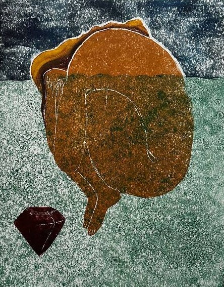 Работа выполнена в технике офортной печати - печать с пластика, монотипия.